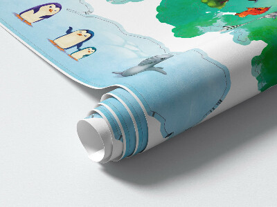 - Autocolant pentru perete 80x125 Hartă colorată a lumii cu continente și natură