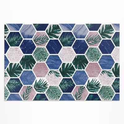 - Covor de vinil acasă Plăci hexagonale motiv de plante și piatră